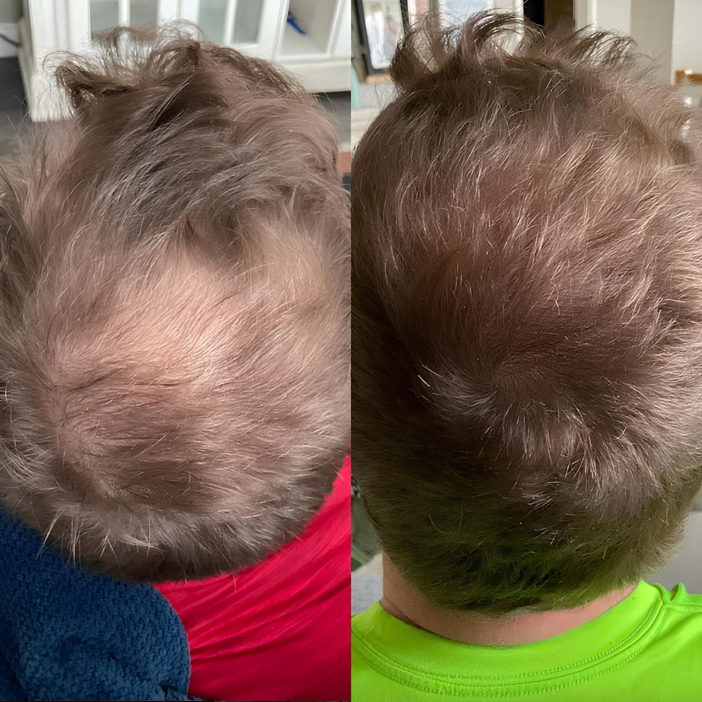"Shocked this product works. I’ve been using this since March 2025. This is Not a paid advertisement or received by promotion. As of June 15, the right photo above is my result. If you’re thinning or thinking of a transplant, I suggest this first. I use it twice a day, in the morning and before bed. Great product !!"